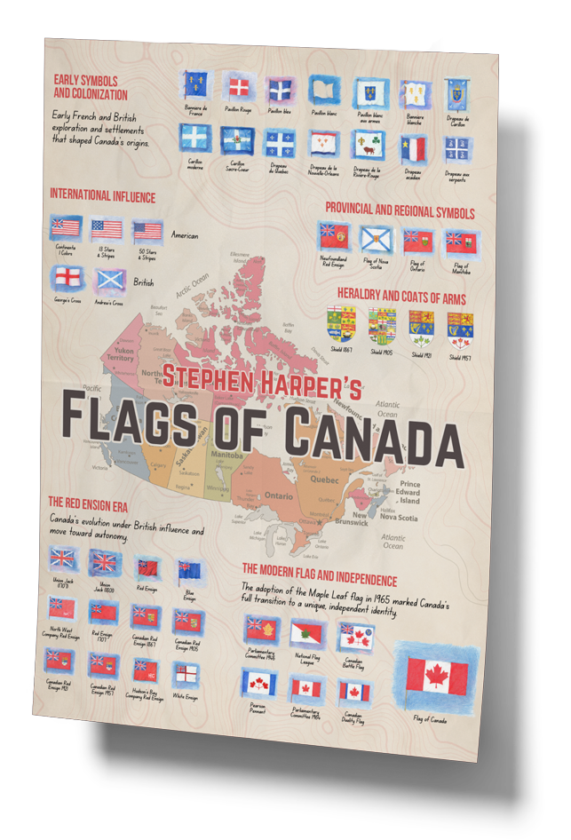 Uncover the rich tapestry of Canada’s past. This offer won’t last forever – click below to get your high-resolution copy of Stephen Harper’s Flags of Canada Poster.